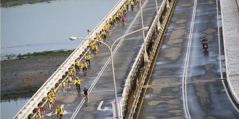 單車環島時,遇到颱風來襲下大雨時你會如何選擇呢?一、按照行程無畏大雨穿起雨衣繼續前進;二、稍待片刻等雨小時再行;三、等天放晴路況良好再行。你會選那一個呢?