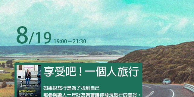 成立進入第十個年頭的『讀人俱樂部』,8/19的讀書會將以『享受吧!一個人的旅行』為分享書,導讀人樊彥忠Fan創業兩年,人生中第一次小旅行就是小一時為了買故事書,自己搭車從嘉義到台南找媽媽,令週圍大人嚇破膽的爆走記錄;然後大學去美國交換學生,畢業後在基金會工作參與國際性會議!對於Fan來說,往夢想前進就是他最重要的旅行。