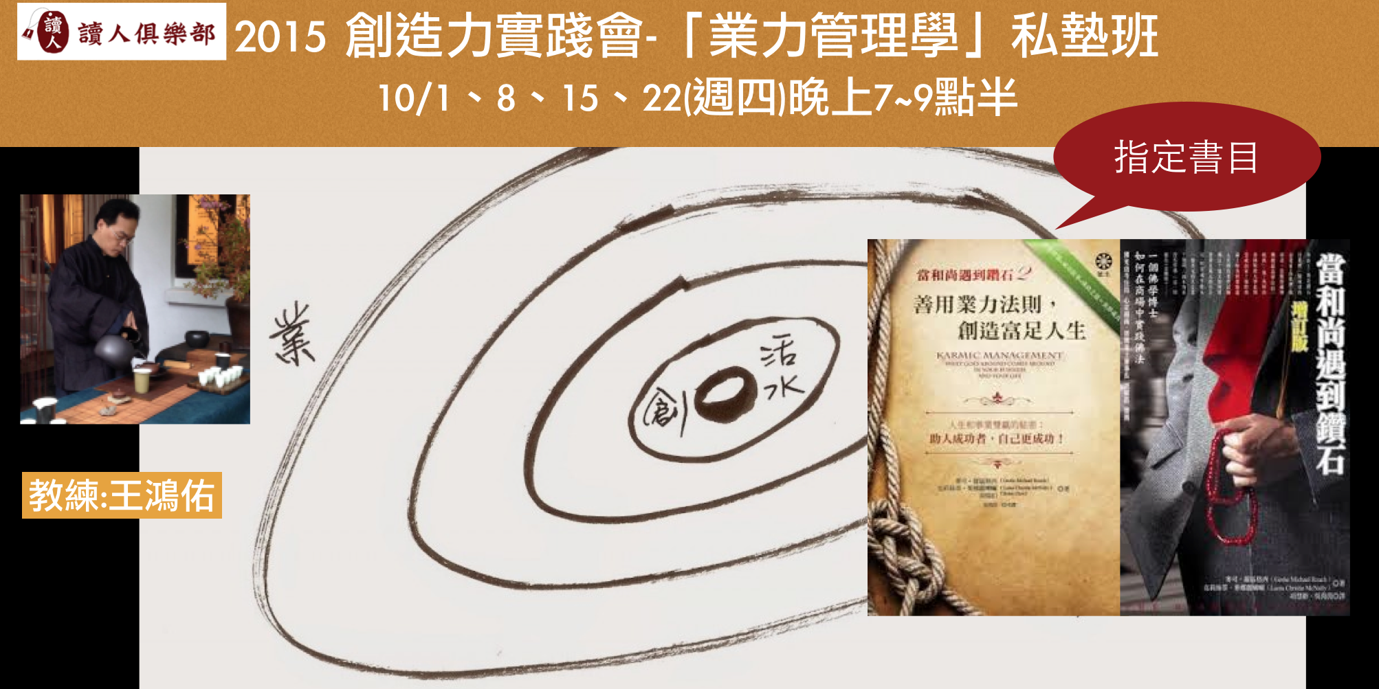 與讀人俱樂部最有業力關係的書《當和尚遇到鑽石》系列,自2006年開始,大小讀書會加上作者格西羅區來台企業場協力,今年在王鴻佑教練的創造力實踐會的親自實證演練,這次將陪著創造力實踐會的選手進行2015年年底個人管理修煉的重點功課練習。